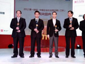”中國企業(yè)社會責(zé)任榜”由上海東方傳媒集團旗下財經(jīng)權(quán)威媒體第一財經(jīng)日報主辦,為目前中國企業(yè)社會責(zé)任領(lǐng)域的重要評比之一。2012中國企業(yè)社會責(zé)任榜年度主題為”仁商.厚澤天下”,旨在追求利益相關(guān)方的共享價值。專業(yè)評審委員會藉由分析企業(yè)在和諧關(guān)系、員工關(guān)懷、環(huán)境責(zé)任、社會公益、經(jīng)濟責(zé)任等五大面向之績效,全方面評選企業(yè)履行社會責(zé)任之能力。