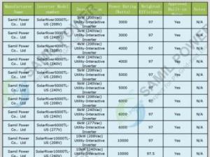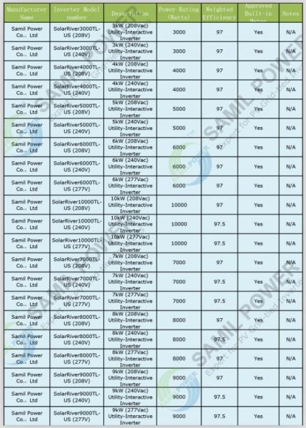 太陽能發(fā)電網(wǎng)訊:近日,記者從山億新能源股份有限公司(以下簡稱“山億新能源”)獲悉,其美國機(jī)型SolarRiver系列3kw-10kw的光伏并網(wǎng)逆變器,在龍年成功列名美國CEC榜單,其中測試效率達(dá)到97.5%遠(yuǎn)遠(yuǎn)高于國內(nèi)其他品牌逆變器,標(biāo)志著山億新能源新產(chǎn)品在美國市場渠道拓展上又向前邁進(jìn)堅實(shí)的一步。