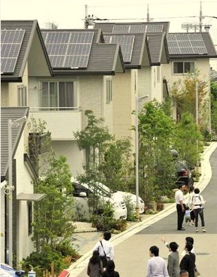 各住宅白天通過太陽能發(fā)電儲存電能,可供夜間使用,家用能源管理系統(tǒng)能夠隨時(shí)監(jiān)控太陽能發(fā)電量以及用電量等數(shù)據(jù),在電力不足的情況下,該系統(tǒng)會自動從關(guān)西電力公司購買電量,當(dāng)電量過剩時(shí),則可以對外出售給電力公司,住宅每年基本可實(shí)現(xiàn)零電費(fèi)以及二氧化碳零排量。