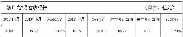 新日光出貨量持續(xù)增加,使本月營(yíng)收增加,合計(jì)新日光今年前7月營(yíng)收為8