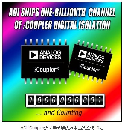 ADI公司(NASDAQ:ADI)今天宣布基于其專有iCoupler®數(shù)字隔離器技術的隔離解決方案出貨量突破10億通道大關。這一成就的取得離不開公司十余年來在全球電流安全隔離領域保持的領先優(yōu)勢,公司解決方案服務于多種應用領域的客戶,包括工業(yè)控制系統(tǒng)和電機驅動、太陽能系統(tǒng)、混合型電動汽車、醫(yī)療器械、等離子電視等。