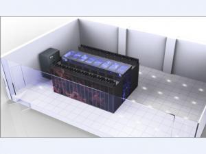 該解決方案運(yùn)行原理是把兩排面對(duì)面排列的機(jī)柜中間的冷通道安裝活動(dòng)墻隔板使其完全封閉,構(gòu)成一個(gè)冷空氣室,使95%左右的冷風(fēng)可以直接送到冷空氣室內(nèi)而進(jìn)入服務(wù)器設(shè)備,經(jīng)過冷熱交換后的熱風(fēng)排到機(jī)房,再回到空調(diào)機(jī)組。
