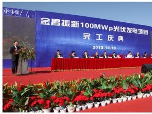 金昌振新100兆瓦光伏發(fā)電項目是金昌市在甘肅省第十八屆蘭洽會上簽約的新能源產(chǎn)業(yè)發(fā)展重點招商引資項目之一,由香港中電集團和振發(fā)新能源集團共同出資興建,項目占地6306畝,總投資約12.45億元。該項目采用國內(nèi)最先進的斜單軸自適應對日跟蹤光伏發(fā)電裝置,擁有自主知識產(chǎn)權和專利技術,發(fā)電量比固定式同規(guī)格光伏電站提高30%左右,是目前全球規(guī)模最大的自適應對日跟蹤光伏電站。截至目前,振新100兆瓦光伏發(fā)電項目已全部建成,并于2013年7月1日并網(wǎng)發(fā)電,累計發(fā)電量超過5800萬度。