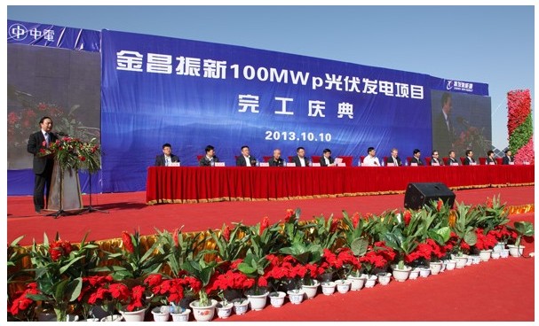 金昌市委書記張令平,市委副書記、市長張應華,中電集團首席營運官李道悟,振發(fā)新能源集團董事長查正發(fā)出席完工慶典儀式,并共同觸摸水晶球為項目完工剪彩。 金昌市委常委、常務副市長、市委秘書長王春江,市人大常委會副主任彭儀,市政協(xié)副主席王廣位,金昌開發(fā)區(qū)管委會主任王文秀,市公安局黨委書記、局長高永宏出席儀式。 王春江代表市委、市人大、市政府、市政協(xié)對金昌振新100兆瓦光伏發(fā)電項目順利完工表示熱烈祝賀。他說,光伏產(chǎn)業(yè)是國家重點支持發(fā)展的戰(zhàn)略性新興產(chǎn)業(yè),也是我們調(diào)整產(chǎn)業(yè)結構、推動轉型跨越的著力點。金昌市發(fā)展光電產(chǎn)業(yè)條件得天獨厚,開發(fā)潛力巨大,可開發(fā)光電規(guī)模2000萬千瓦;境內(nèi)電網(wǎng)構架完善,接入條件便利;區(qū)域交通便捷,可用土地廣闊;高載能產(chǎn)業(yè)集中,就地消納能力強,特別是太陽能真空鍍膜及平板集熱器等新能源裝備制造業(yè)有良好基礎。金昌振新100兆瓦光伏發(fā)電項目是金昌市新能源產(chǎn)業(yè)發(fā)展的重點招商引資項目之一,該項目在工程建設過程中,始終堅持“以人為本、安全為先、管理規(guī)范”的理念,全面實現(xiàn)了工程安全、質(zhì)量、進度和投資的有序可控,業(yè)已成為金昌市招商引資項目的成功典范,對促進全市光伏產(chǎn)業(yè)發(fā)展具有重要意義。 王春江表示,作為地方政府,將一如既往提供有力的政策保障,全力支持光伏發(fā)電項目建設,努力打造千萬千瓦級風光電基地,加快建設國家新能源利用示范城市,為風光電企業(yè)營造良好的發(fā)展環(huán)境。希望中電集團、振發(fā)新能源兩大企業(yè)繼續(xù)加強與金昌市的合作,通過資源共享、優(yōu)勢互補,共同推進金昌市新能源光伏產(chǎn)業(yè)不斷發(fā)展壯大。