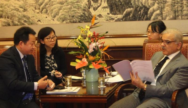 2月21日下午,漢能全球光伏應(yīng)用集團(tuán)亞太區(qū)域公司副總裁張凱在釣魚臺國賓館拜會了來華進(jìn)行國事訪問的巴基斯坦總理納瓦茲•謝里夫的弟弟、現(xiàn)任旁遮普。ò突固棺畲笫》菁皣壹壧柲馨l(fā)電項(xiàng)目示范區(qū))省長沙赫巴茲•謝里夫一行。