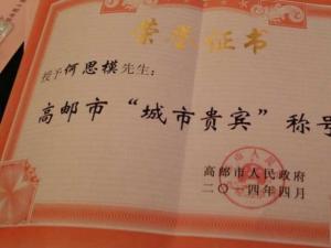 為褒獎在高郵市經(jīng)濟(jì)建設(shè)、社會發(fā)展及友好交流合作中做出突出貢獻(xiàn)的國內(nèi)外友好人士,鼓勵和吸引更多友好人士參與和支持高郵的發(fā)展,進(jìn)一步擴(kuò)大高郵的對外影響,高郵市政府決定授予易事特公司董事長何思模教授、香港YAMATOO控股有限公司總經(jīng)理高遠(yuǎn)等8位在郵投資人士“城市貴賓”稱號。