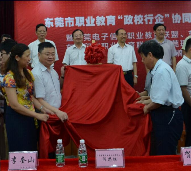 易事特公司董事長何思模教授(前排左二)為東莞電子信息職業(yè)教育聯(lián)盟揭牌