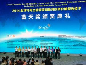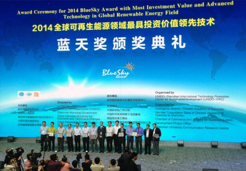"全球可再生能源領(lǐng)域最具投資價(jià)值領(lǐng)先技術(shù)藍(lán)天獎(jiǎng)” 是由聯(lián)合國(guó)工業(yè)發(fā)展組織、深圳市人民政府、中國(guó)可再生能源學(xué)會(huì)等組織機(jī)構(gòu)共同主辦!八{(lán)天獎(jiǎng)”的評(píng)選旨在引導(dǎo)可再生能源在發(fā)展中國(guó)家的規(guī);瘧(yīng)用,以緩解常規(guī)化石能源供應(yīng)短缺以及溫室氣體效應(yīng)對(duì)全球氣候人類(lèi)和環(huán)境的影響。 藍(lán)天獎(jiǎng)在全球范圍內(nèi)征集可再生能源利用領(lǐng)域最具產(chǎn)業(yè)化投資價(jià)值的先進(jìn)技術(shù),自2005年起已成功舉辦了四屆,評(píng)選出的來(lái)自11個(gè)國(guó)家的34項(xiàng)獲獎(jiǎng)技術(shù)均得到了有效的產(chǎn)業(yè)化推廣。本屆藍(lán)天獎(jiǎng)收集了來(lái)自美國(guó)、法國(guó)、挪威和中國(guó)等國(guó)家的眾多技術(shù)申請(qǐng),從中評(píng)選了10項(xiàng)技術(shù)頒發(fā)“藍(lán)天獎(jiǎng)”。