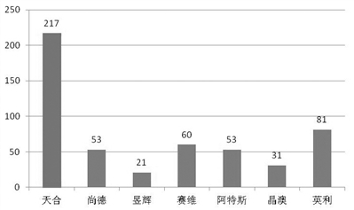 圖1典型光伏企業(yè)國(guó)內(nèi)發(fā)明專利授權(quán)數(shù)量