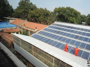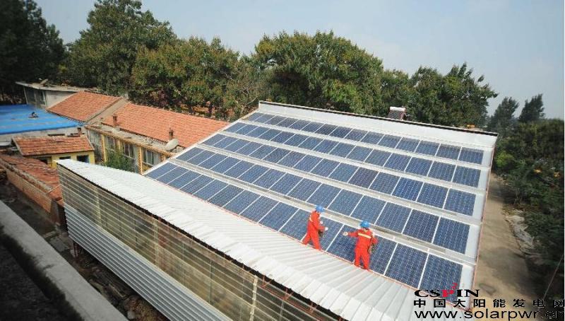 9月25日,國(guó)網(wǎng)山東青州供電公司工作人員在查看屋頂光伏裝置的運(yùn)行情況。當(dāng)日,山東濰坊青州市益都街道小營(yíng)村村民賈世鵬的屋頂光伏正式并網(wǎng)發(fā)電,這也是青州市首戶并網(wǎng)發(fā)電的農(nóng)村屋頂光伏裝置。該用戶投入約20萬(wàn)元,共安裝光伏太陽(yáng)能板75塊,總裝機(jī)容量20千瓦,設(shè)計(jì)年發(fā)電量23856千瓦時(shí)。 2012年開(kāi)始,山東省家庭式太陽(yáng)能發(fā)電項(xiàng)目逐漸展開(kāi),截至目前,已有65個(gè)家庭太陽(yáng)能光伏發(fā)電項(xiàng)目實(shí)現(xiàn)并網(wǎng)發(fā)電。