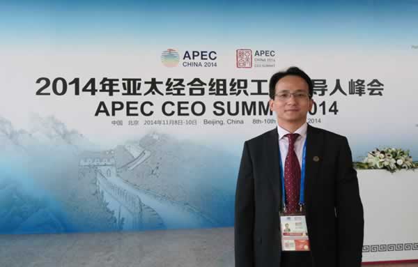 中海陽董事長薛黎明 作為本屆APEC領導人非正式會議期間的重要活動之一, 2014年APEC工商領導人峰會于11月8日至10日在北京舉辦。在本屆峰會上,APEC各經(jīng)濟體領導人、亞太地區(qū)工商界領袖和知名學者就“推動區(qū)域經(jīng)濟一體化”、“促進經(jīng)濟創(chuàng)新發(fā)展、改革與增長”等議題,分享了看法和建議。作