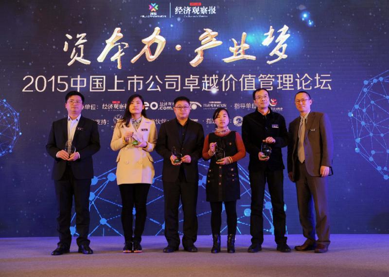 2015中國上市公司卓越價值管理論壇由中國三大經(jīng)濟類報紙之一——《經(jīng)濟觀察報》主辦,以“資本力 產(chǎn)業(yè)夢”為主題,旨在深度探討如何對上市公司做好價值管理,深入分析上市公司如何利用資本市場平臺完成合法合規(guī)價值管理的渠道和路徑。監(jiān)管層代表、上市公司、投行、研究my 機構(gòu)、私募股權(quán)基金及證券咨詢行業(yè)的精英應(yīng)邀出席了本次論壇。在客觀全面分析2014年上市公司價值維護數(shù)據(jù)基礎(chǔ)上,結(jié)合經(jīng)濟觀察研究院調(diào)研報告,主辦方評選出價值管理綜合表現(xiàn)前十名的上市公司,并舉行了隆重的頒獎典禮。