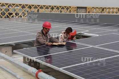 承建商:江陰友科太陽(yáng)能器材有限公司 上周五,由江陰友科太陽(yáng)能全程設(shè)計(jì)、施工的智能化光伏電站正式竣工!蘇州政府為響應(yīng)“支持利用可再生能源”的國(guó)家號(hào)召,大力推進(jìn) “綠色建筑”,打造“低碳城市”,故在建筑中加入了光伏發(fā)電系統(tǒng)。本系統(tǒng)總安裝容量為64.77kw,采用了255w常規(guī)多晶硅光伏組件和智能光伏組件共254片,位于建筑物6樓平頂。通過(guò)用戶(hù)側(cè)并入電網(wǎng)。整個(gè)光伏電站與四周連綿起伏的山峰相得益彰,看上去美觀簡(jiǎn)潔大氣。
