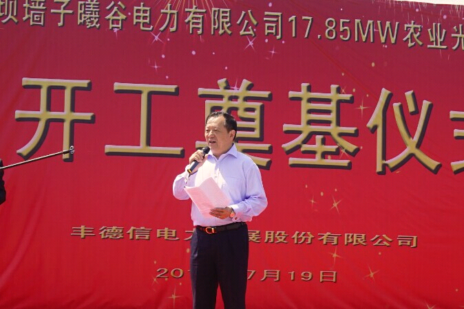 豐德信電力首席執(zhí)行官王高翔先生在致辭中表示,“農(nóng)光互補(bǔ)”的新型產(chǎn)業(yè)結(jié)構(gòu)必將為地方開辟新的經(jīng)濟(jì)增長點(diǎn),對拉動地方經(jīng)濟(jì)的發(fā)展起到積極的作用,帶動太陽能發(fā)電成為當(dāng)?shù)氐囊淮螽a(chǎn)業(yè)。