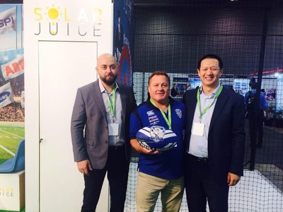 當(dāng)天,橄欖球傳奇巨星 Terry Lamb 也來(lái)到現(xiàn)場(chǎng) 并參觀了 Solar Juice 的展位。