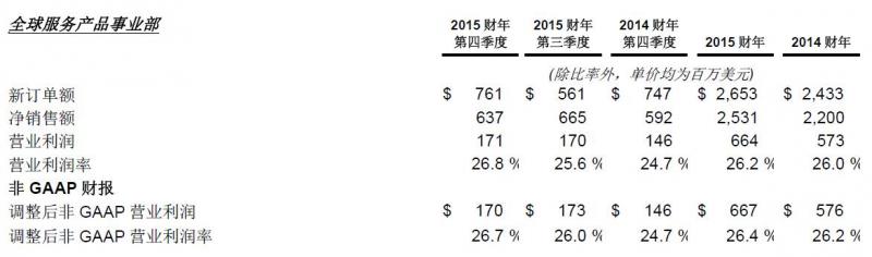 第四季度和財(cái)年各事業(yè)部的財(cái)務(wù)表現(xiàn)及與前期的比較