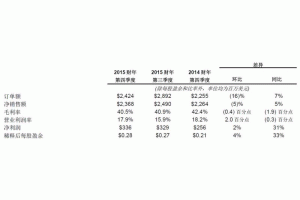 • 訂單額、凈銷售額及每股盈余均實(shí)現(xiàn)同比增長(zhǎng) • 2015財(cái)年回饋給股東的現(xiàn)金總額達(dá)18.1億美元,同比增加13.3億美元