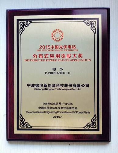 2016年1月7-8日,“2015中國光伏電站年會暨第三屆中國光伏電站年度獎頒獎典禮”在常州九洲喜來登酒店隆重舉行。百家重量級企業(yè)齊聚常州, 共同見證光伏行業(yè)的又一次盛會。作為優(yōu)秀組串式逆變器供應商,寧波錦浪新能源科技股份有限公司(以下簡稱:錦浪科技)贏得了評委會和業(yè)界人士的一致認可,斬獲“2015中國光伏電站分布式應用貢獻大獎”。