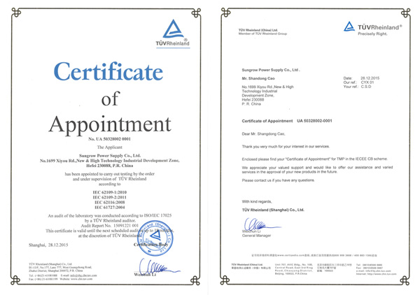 1月14日,陽光電源股份有限公司獲得由TüV萊茵認(rèn)證公司授予的WMT實(shí)驗(yàn)室資質(zhì),這是TüV萊茵向國內(nèi)逆變器廠家頒發(fā)的首張WMT實(shí)驗(yàn)室資質(zhì)證書,也是陽光電源繼獲得CNAS認(rèn)可后的又一重大突破,再次證明了陽光電源測試能力方面的領(lǐng)先優(yōu)勢。