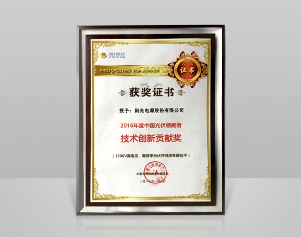 標題:陽光電源榮膺2016年中國光伏領(lǐng)跑者技術(shù)創(chuàng)新貢獻獎