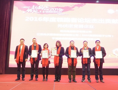 SMA中國·兆伏愛索榮幸受邀參會,并被授予“2016中國光伏領(lǐng)跑者創(chuàng)新論壇杰出貢獻(xiàn)獎”。同時SMA中國技術(shù)副總裁,兼兆伏愛索研發(fā)總監(jiān)廖小俊先生也受邀成為領(lǐng)跑者創(chuàng)新論壇首批專家委員會的成員。這些榮譽(yù)都是大家對SMA中國·兆伏愛索在新能源行業(yè)的研發(fā)能力與創(chuàng)新成績的肯定。