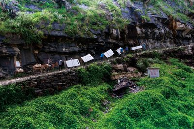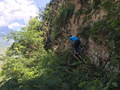 走進 “懸崖村” “背運”太陽能板爬藤梯
