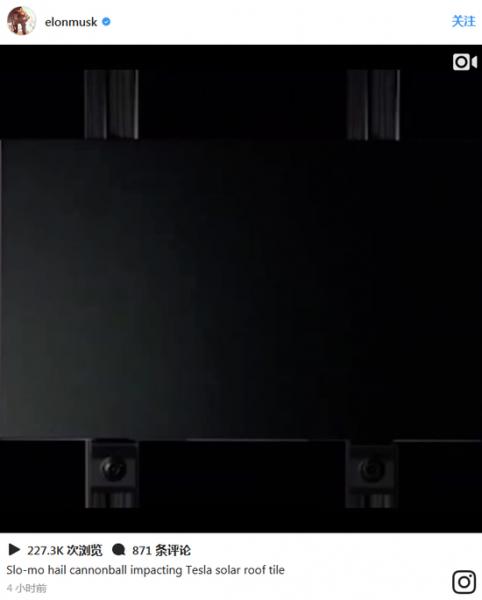 這段視頻由馬斯克在個(gè)人Instagram上公布。視頻中,一塊大冰雹--至于究竟有多大就不知曉了,不過特斯拉將它叫做“炮彈”,然后以非常快的速度撞向屋頂瓦片,最后,冰雹裂成了成千上萬塊小冰塊,而屋頂瓦片看起來完全沒有損壞。