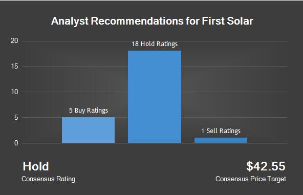 摩根大通公司在3月25日(星期六)的一份研究報(bào)告中將First Solar的評級下調(diào)至“持有”評級,并對該股設(shè)定了38.00美元的目標(biāo)價(jià)。JMP Securities在4月27日(周四)公布的一份研究報(bào)告中,將First Solar公司的評級從“表現(xiàn)不佳”上調(diào)至“市場表現(xiàn)”,并將其股價(jià)目標(biāo)從29.40美元下調(diào)至28.99美元。他們指出,此舉是對估值的一次評估。Vetr在1月23日(星期一)的研究報(bào)告中將First Solar的股票從“強(qiáng)買”評級下調(diào)至“買入”評級,并設(shè)定了38.18美元的目標(biāo)價(jià)。李約瑟公司于2月22日(星期三)在一份研究報(bào)告中重新發(fā)布了First Solar公司股票的“持有”評級。