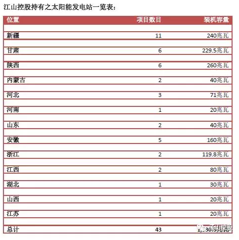 江山控股董事會主席、行政總裁及執(zhí)行董事曾儉華先生表示:“集團一直物色合適的投資機會,透過不同的合作及收購方式,以吸納具有長遠發(fā)展?jié)摿胺(wěn)定收入的太陽能發(fā)電站,擴充業(yè)務的覆蓋地區(qū)及收入。此次收購的三個項目為本集團長期發(fā)展提供良機。此外,榆林項目擁有之發(fā)電站已成功接駁至電網(wǎng),而嘉峪關及臨潭兩項目之發(fā)電站也已完成首次接駁電網(wǎng),可實時增加集團的收入,同時令集團的總裝機容量增加至1,330.3兆瓦。憑借集團穩(wěn)健的財務狀況及務實的經(jīng)營策略,我們將緊抓市場機遇大力發(fā)展國內(nèi)太陽能發(fā)電業(yè)務,繼續(xù)發(fā)掘合適的太陽能發(fā)電站項目,進一步擴大集團的業(yè)務規(guī)模,提升股東回報!