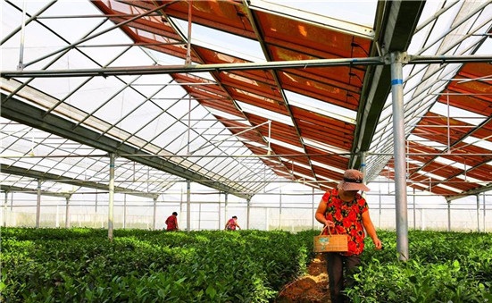 “一般茶葉種植3年才可以采摘,但在光伏大棚里做試驗的這些茶葉,兩年就達(dá)到了可以采摘的標(biāo)準(zhǔn)!痹诓⑷针娹r(nóng)業(yè)示范基地,徐召學(xué)告訴記者。他在基地里承包了500多畝光伏大棚進(jìn)行茶葉種植,創(chuàng)建了“北茶老徐”茶葉品牌。徐召學(xué)說,由于光伏大棚設(shè)施好,帶溫控、濕度適宜,有噴灌設(shè)施,非常利于茶樹的生長。正因如此,這幾年來,昌盛日電的光伏大棚建到哪里,老徐的茶園就跟到哪里。如今,老徐已在昌盛日電全國14個園區(qū)建起了5000多畝茶園,遍布天津、石家莊、長春等地。
