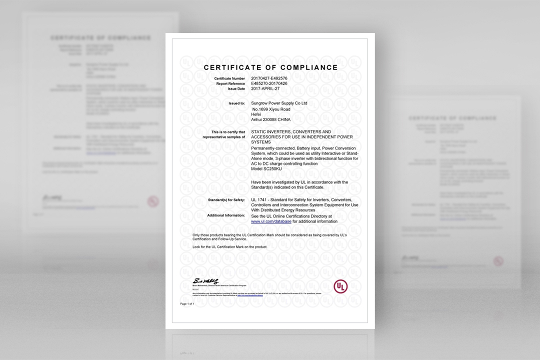 近日,陽光電源儲(chǔ)能逆變器SC250KU順利通過美國(guó)UL認(rèn)證,這是國(guó)內(nèi)兼具并網(wǎng)和離網(wǎng)功能的儲(chǔ)能逆變器首次獲得UL認(rèn)證,意味著陽光電源儲(chǔ)能逆變器打開了進(jìn)入北美市場(chǎng)乃至全球市場(chǎng)的綠色通道。