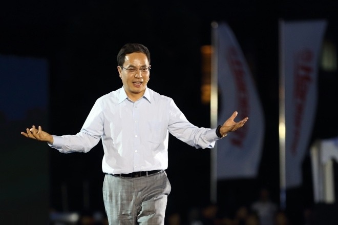 2016年7月2日,北京漢能控股集團(tuán)總部,漢能控股集團(tuán)董事局主席兼首席執(zhí)行官李河君。(視覺(jué)中國(guó)/圖)