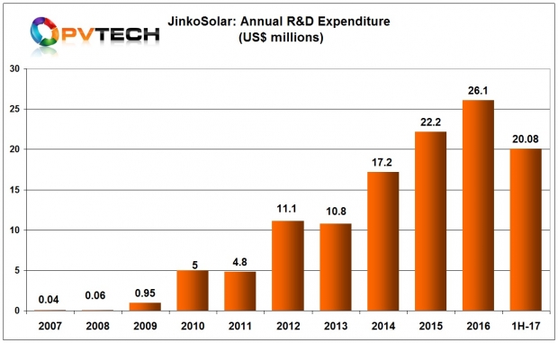 晶科能源的研發(fā)支出將超過2016年2610萬美元的紀(jì)錄。