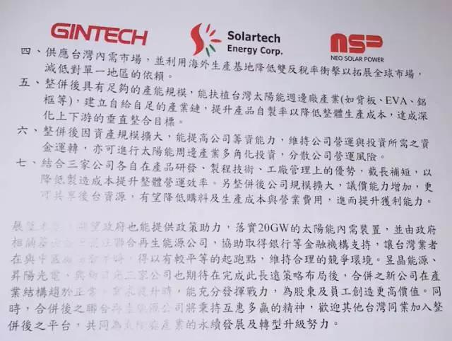 五、整并后具有足夠的產(chǎn)能規(guī)模,能扶植臺灣太陽能周邊廠產(chǎn)業(yè)(如背板、EVA、鋁框等),建立自給自足的產(chǎn)業(yè)鏈,提升產(chǎn)品自制率以降低整體生產(chǎn)成本,達(dá)成深化上下游的垂直整合目標(biāo)。