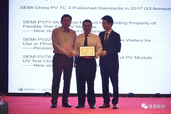 此次標(biāo)準(zhǔn)會議上,由隆基股份牽頭組織修訂的《SEMI PV22-0817硅片標(biāo)準(zhǔn)》正式面向全球發(fā)布。SEMI中國光伏標(biāo)準(zhǔn)技術(shù)委員會核心委員,一直負(fù)責(zé)推動此項標(biāo)準(zhǔn)修訂的隆基股份公共事務(wù)區(qū)域總監(jiān)鄧良平先生,代表隆基股份上臺領(lǐng)取標(biāo)準(zhǔn)發(fā)布牌!禨EMI PV22-0817硅片標(biāo)準(zhǔn)》的順利發(fā)布,標(biāo)志著隆基股份在國際性光伏標(biāo)準(zhǔn)制定方面邁出了歷史性的一步。該標(biāo)準(zhǔn)的制定部分吸收了國內(nèi)外專家提出的意見和建議,經(jīng)過組內(nèi)投票、國內(nèi)專家投票以及全球投票三大環(huán)節(jié),歷時2年時間,終獲通過,真正是可喜可賀。