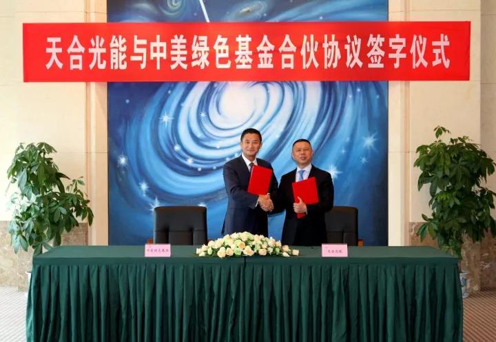 10月14日,天合光能和中美綠色投資管理有限公司(下稱“中美綠色基金”)合作簽約儀式在天合光能總部舉行。天合光能董事長兼首席執(zhí)行官高紀(jì)凡與中美綠色基金首席執(zhí)行官白波出席并共同簽署了“北京中美綠色投資中心合伙協(xié)議”。