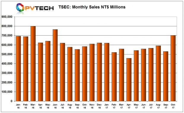 臺灣太陽能電池與組件制造商元晶太陽能日前公布其2017年10月份營收額實現大幅增長。