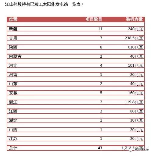 江山控股董事會主席,行政總裁兼執(zhí)行董事曾儉華先生表示:“集團一直物色合適的投資機會,以收購具有長遠發(fā)展?jié)摿胺(wěn)定收入的太陽能發(fā)電站是次收購的兩個發(fā)電站項目,不僅可加強集團現(xiàn)有之太陽能發(fā)電站組合及完善集團的業(yè)務布局,兩個項目已成功接駁電網(wǎng)亦可即時增加集團的收入。集團現(xiàn)時的總裝機容量已進一步增加至1,719.3兆瓦,憑借集團穩(wěn)健的財務狀況及務實的經(jīng)營策略,我們將緊抓市場機遇大力發(fā)展國內太陽能發(fā)電站業(yè)務,繼續(xù)發(fā)掘合適的太陽能電發(fā)站項目,進一步擴大集團的業(yè)務規(guī)模,提升股東回報!