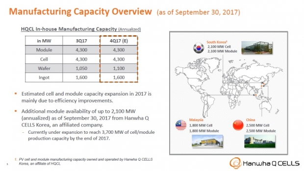由于公司為恢復(fù)盈利而嚴(yán)格控制支出,韓華Q CELLS的太陽能電池與組件內(nèi)部自產(chǎn)產(chǎn)能在2017年并未增加。