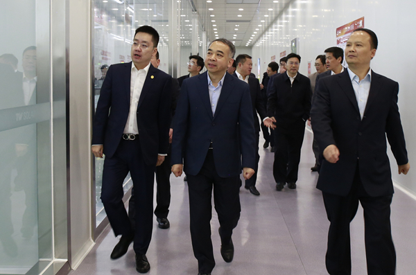 劉漢元主席陪同范銳平書記視察通威太陽能智能制造生產(chǎn)車間