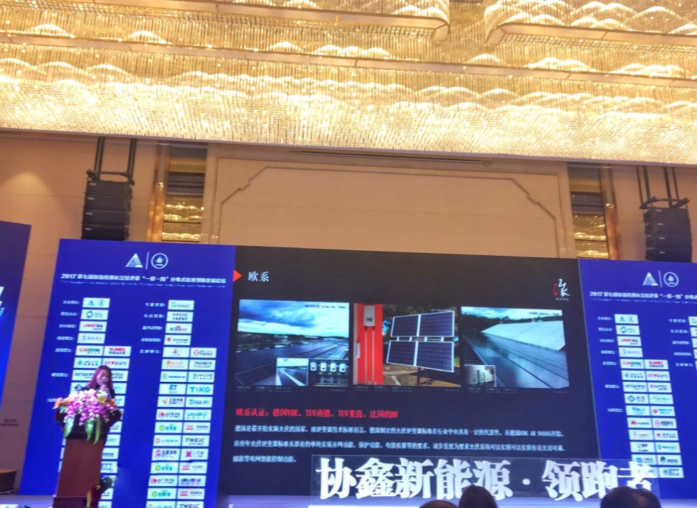 在論壇大會主題報告中,錦浪科技代表做了主題為“組串式逆變器在海內(nèi)外的發(fā)展創(chuàng)新和實踐”的演講,在著力推進可再生能源領域供給側(cè)結(jié)構(gòu)性改革的國家大背景下,與會嘉賓展開深入交流,分享錦浪科技在國家政策的項目實踐中的經(jīng)驗分享和交流探索。錦浪科技代表在分享環(huán)節(jié)中談到, “發(fā)展光伏產(chǎn)業(yè),要重視標準創(chuàng)新、技術(shù)創(chuàng)新和商業(yè)模式創(chuàng)新。”在談及對光伏事業(yè)的期許時,她表示“在發(fā)展光伏事業(yè)中,一日光伏人,終身藍天夢”。