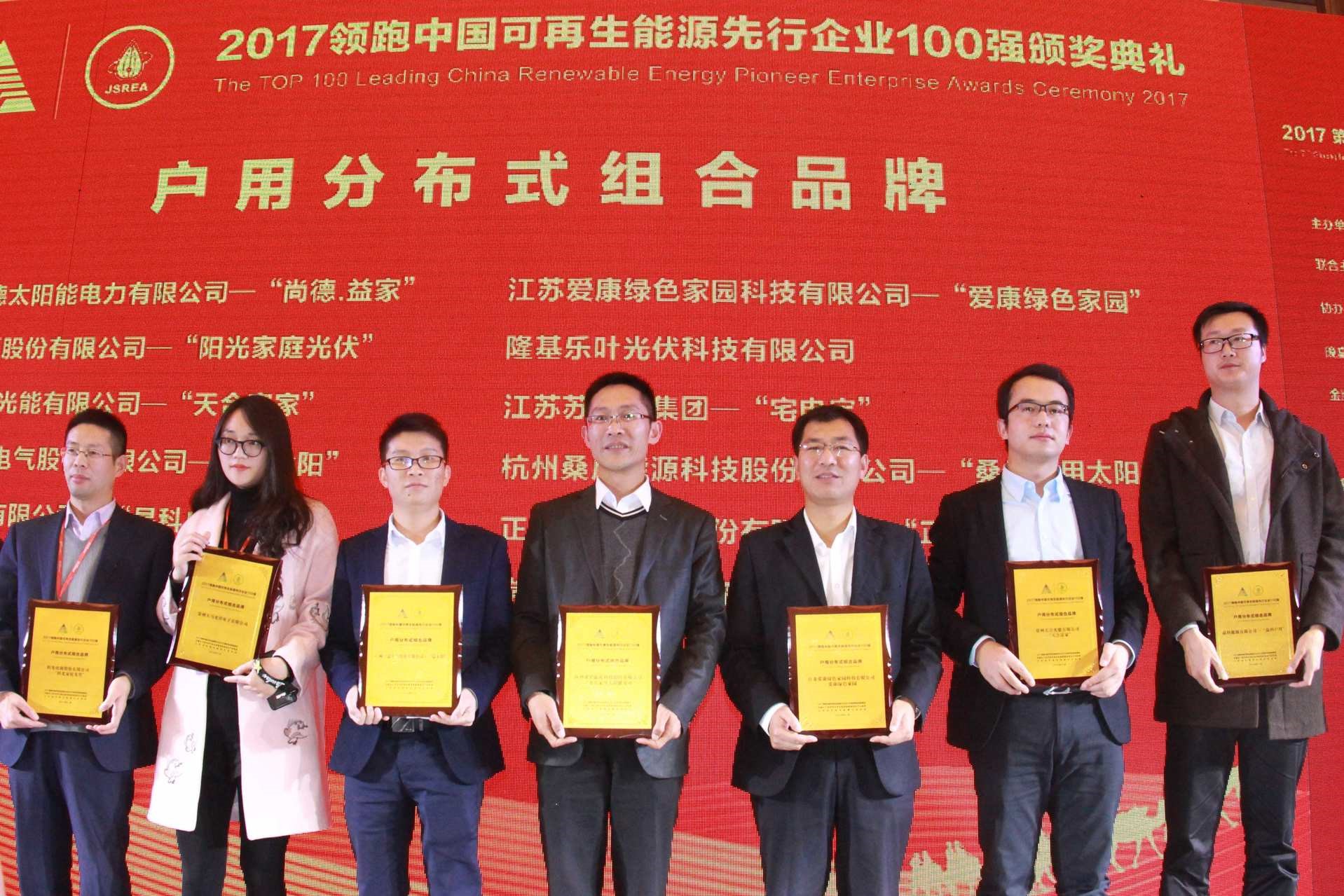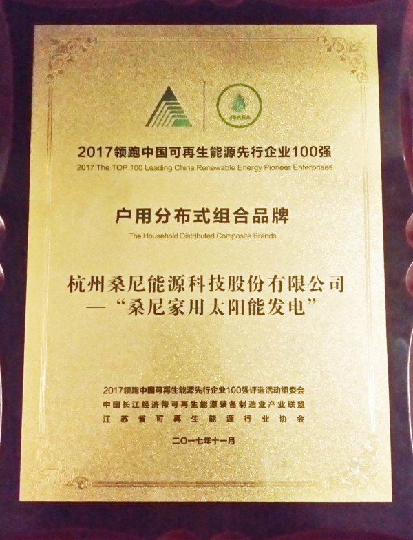 11月24日,2017年第七屆加強(qiáng)應(yīng)用長江經(jīng)濟(jì)帶“一帶一路”分布式能源創(chuàng)新發(fā)展論壇在江蘇南京隆重舉行,2017領(lǐng)跑中國可再生能源先行企業(yè)100強(qiáng)也隨之誕生。桑尼能源憑借雄厚的產(chǎn)品技術(shù)實(shí)力和全產(chǎn)業(yè)鏈一站式家用光伏解決方案,榮獲“2017領(lǐng)跑中國可再生能源先行企業(yè)100強(qiáng)-戶用分布式組合品牌“大獎(jiǎng)!