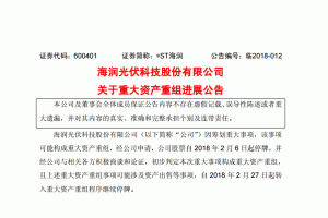 海潤(rùn)光伏科技股份有限公司(以下簡(jiǎn)稱"公司")因籌劃重大事項(xiàng),該事項(xiàng)可能構(gòu)成重大資產(chǎn)重組,經(jīng)公司申請(qǐng),公司股票自2018年2月6日起停牌,并經(jīng)公司與相關(guān)各方積極商談和論證,初步判定本次重大事項(xiàng)構(gòu)成重大資產(chǎn)重組,且上述重大資產(chǎn)重組事項(xiàng)可能涉及資產(chǎn)出售等事項(xiàng),自2018年2月27日起轉(zhuǎn)入重大資產(chǎn)重組程序繼續(xù)停牌。