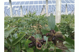 天下真花獨(dú)牡丹。眼下正是油用牡丹籽成熟的季節(jié),這兩個電站上共計近1000畝的光伏油用牡丹郁郁蔥蔥、長勢喜人,飽滿的果莢藏在茂密的枝葉間,迎接著采收工人的到來。經(jīng)現(xiàn)場測產(chǎn),已收獲地塊平均畝產(chǎn)鮮果莢達(dá)到180公斤,經(jīng)晾曬脫殼后,預(yù)估畝產(chǎn)油牡丹商品種子40公斤,接近同等苗齡常規(guī)露地種植的產(chǎn)量水平,尤其在今年4月初遭遇低溫凍害后業(yè)界普遍減產(chǎn)30%的情況下,更見優(yōu)勢。