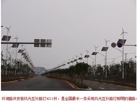 環(huán)湖路共安裝風(fēng)光互補(bǔ)路燈4211套 ,為國(guó)內(nèi)最長(zhǎng)一條使用風(fēng)光互補(bǔ)路燈照明的道路