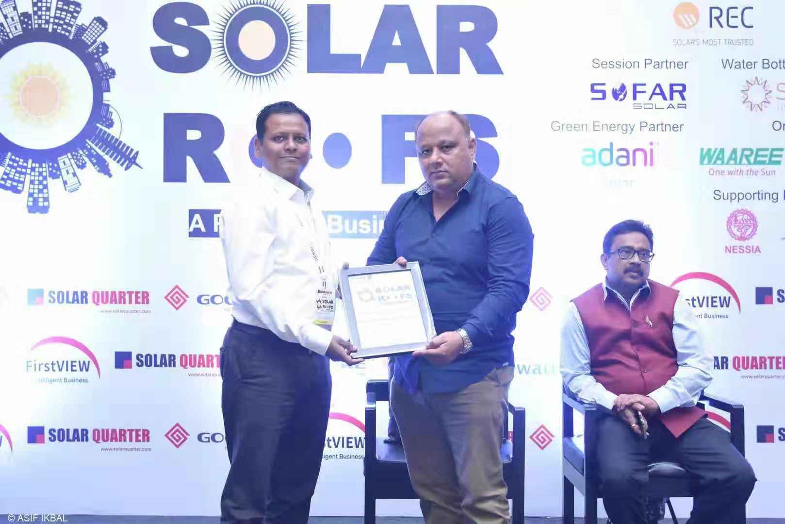 ▲固德威印度技術(shù)負(fù)責(zé)人Mr Chandrakant (左)接受頒獎(jiǎng)