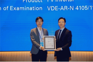 11月15日,在2018德國(guó)萊茵TÜV太陽(yáng)能光伏技術(shù)研討會(huì)上, TÜV萊茵為江蘇固德威電源科技股份有限公司(以下簡(jiǎn)稱固德威)旗下最新三相儲(chǔ)能逆變器ET系列頒發(fā)證書,這同時(shí)也是全球首張2018版德國(guó)VDE-AR-N 4105證書。TÜV萊茵大中華區(qū)太陽(yáng)能服務(wù)總經(jīng)理李衛(wèi)春先生、江蘇固德威電源科技股份有限公司副總裁方剛先生共同出席了頒證儀式。