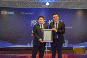 2019年1月30日,德國(guó)TüV萊茵與尚德電力在無錫尚德總部生態(tài)大樓進(jìn)行了授牌儀式。德國(guó)TüV萊茵授予尚德光伏測(cè)試中心“實(shí)驗(yàn)室TMP”獎(jiǎng)牌和認(rèn)可證書。無錫尚德總裁何雙權(quán)先生、副總裁張衛(wèi)先生、德國(guó)萊茵TüV大中華及亞太區(qū)太陽(yáng)能服務(wù)副總裁鄒馳騁先生與大中華區(qū)太陽(yáng)能服務(wù)總經(jīng)理章翊馳先生出席了授牌儀式。