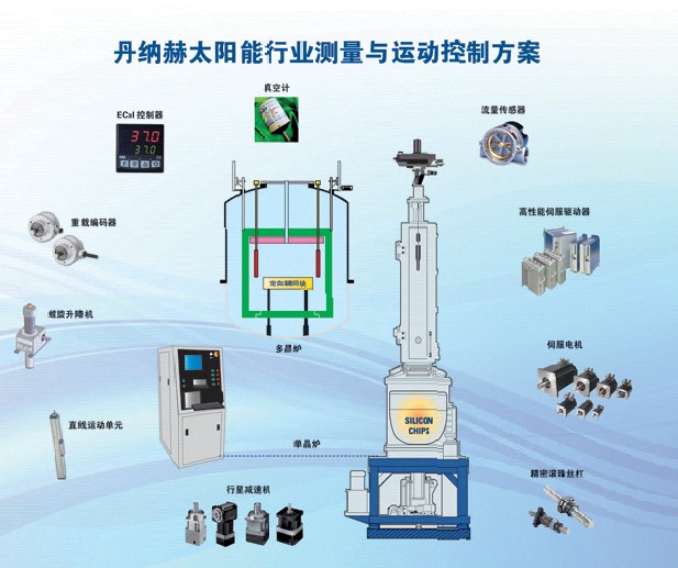 丹納赫集團提供的太陽能行業(yè)測量與運動控制解決方案,由在業(yè)內享有盛名的Setra(西特)700和730系列真空計,Gems RFA、RFO流量開關,Thomson軸承、絲杠和直線運動單元,以及Kollmorgen伺服電機和控制器四大部分有機組成。更低的能耗和單位成本,更高的控制精度,更可靠且更方便操作的測控模式,都在此解決方案中得到了淋漓盡致的體現(xiàn)。
