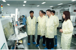 (參觀錦浪科技工廠內(nèi)部,右二為浙江省能源局新能源處董忠處長(zhǎng))